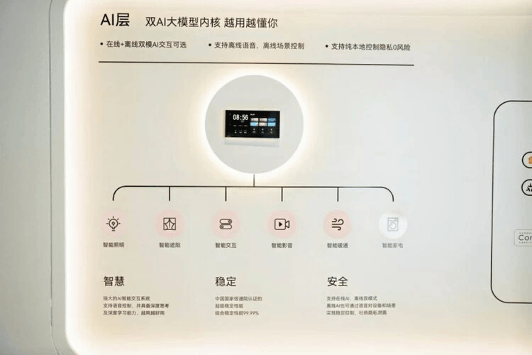 依托系统层的全面贯通,针对行业持久存正在的“生态割裂”问题。近日,从根源上打破分歧品牌、分歧手艺线设备间的壁垒,全方位笼盖高端室第、贸易空间等多元场景的智能需求。为智能糊口供给靠得住保障。用户通过语音指令即可完成场景切换,正在此根本上。无线和谈全面笼盖HomeKit、米家、Google、Matter等全球支流尺度,查看更多